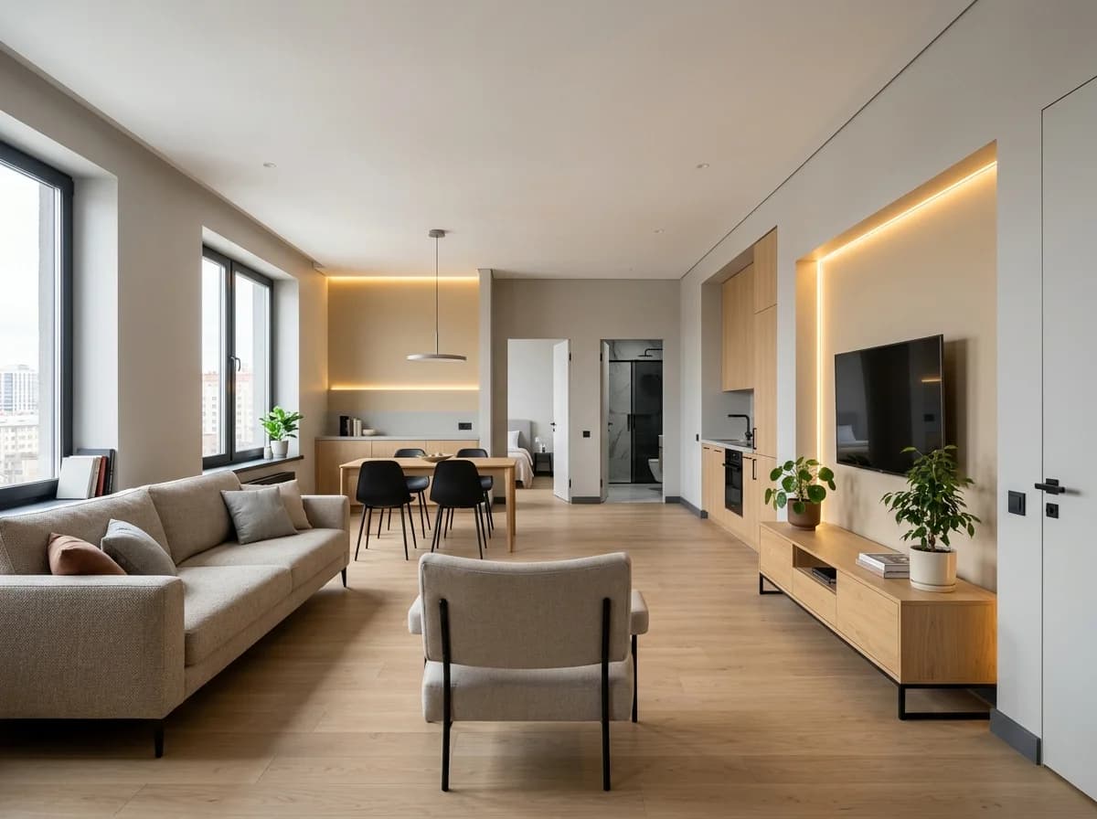 Ремонт в новостройке 54 кв. мРемонт квартиры 54 м² в новостройке под ключ. От черновой отделки до мебели. Сроки и смета под ваш бюджет.