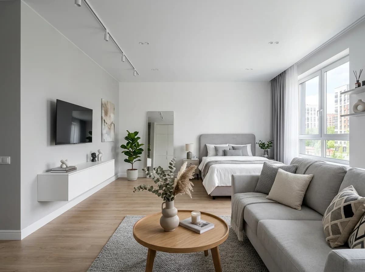 Бюджетный ремонт студииНедорогой ремонт квартиры-студии под ключ. Оптимизация по материалам без потери качества.